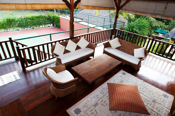 We also have an upper-floor verandah-style living room overlooking the whole property and featuring panoramic views of the river and rice-fields. There is a separate formal dining room overlooking the pool and rice paddies as well as an informal outdoor dining deck next to the pool.