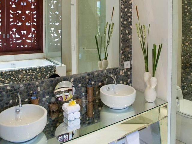 This amazing beachfront villa has been finished to the highest standards. Conceived like a boutique hotel, it is perfect for a group of friends with its five master bedrooms across two bungalows separated by a majestic 100 sqm seaview open living room, a 25m beachfront infinity pool, a kids pool, a beachfront jacuzzi, as well as a beautiful floating bale in the middle of the pound. Each master bedroom has its own distinct personality, and its own luxurious bathroom. There is also a Library off one of the master bedroom that can be turned into an extra twin bedroom. A big garden stops where the beach starts making it the perfect place to enjoy the amazing sunsets that Sound of The Sea is famous for. Finished with an extreme attention to details, villa “Sound of the Sea” is decorated with a mix of traditional furniture and modern designs. Our Balinese team of highly trained 10 has enchanted our guests time after time.